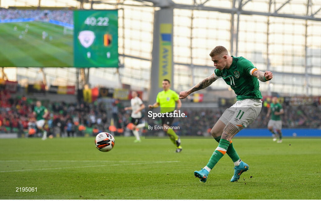 26 March 2022; James McClean of Republic of Ireland during the international friendly match between Republic of Ireland and Belgium at the Aviva Stadium in Dublin. Photo by Eóin Noonan/Sportsfile
