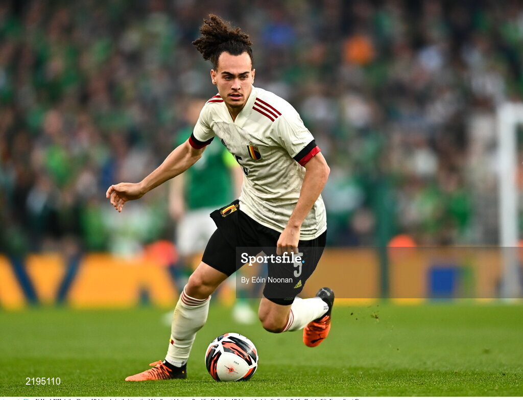 26 March 2022; Arthur Theate of Belgium during the international friendly match between Republic of Ireland and Belgium at the Aviva Stadium in Dublin. Photo by Eóin Noonan/Sportsfile