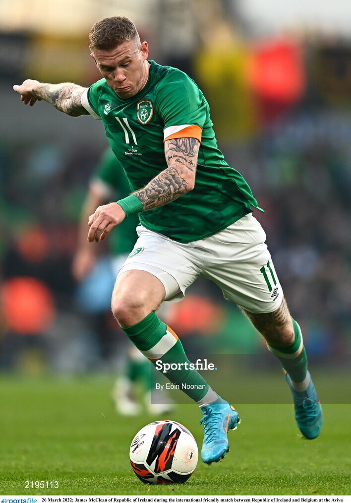 26 March 2022; James McClean of Republic of Ireland during the international friendly match between Republic of Ireland and Belgium at the Aviva Stadium in Dublin. Photo by Eóin Noonan/Sportsfile