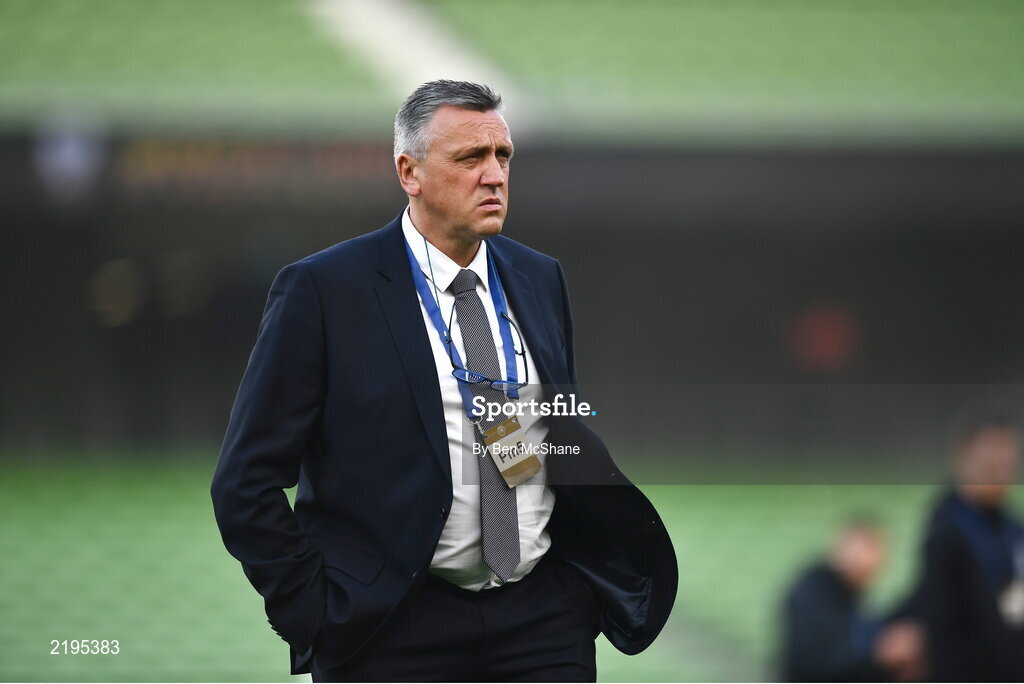 29 March 2022; Lithuania manager Valdas Ivanauskas before the international friendly match between Republic of Ireland and Lithuania at the Aviva Stadium in Dublin. Photo by Ben McShane/Sportsfile