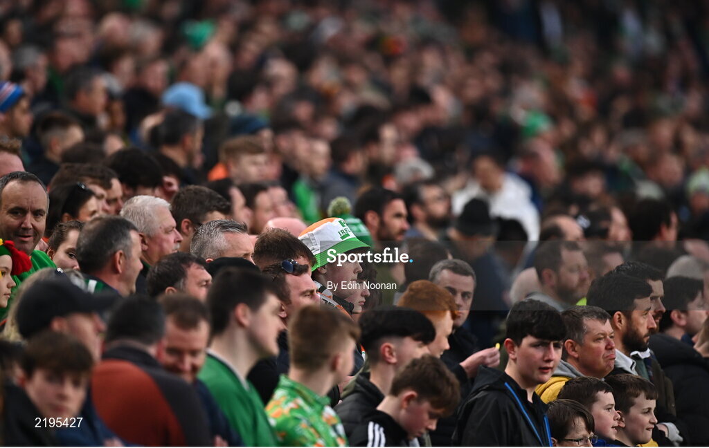 29 March 2022; Republic of Ireland supporters before the international friendly match between Republic of Ireland and Lithuania at the Aviva Stadium in Dublin. Photo by Eóin Noonan/Sportsfile