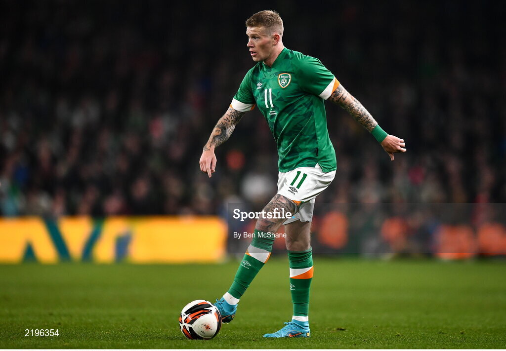 29 March 2022; James McClean of Republic of Ireland during the international friendly match between Republic of Ireland and Lithuania at the Aviva Stadium in Dublin. Photo by Ben McShane/Sportsfile