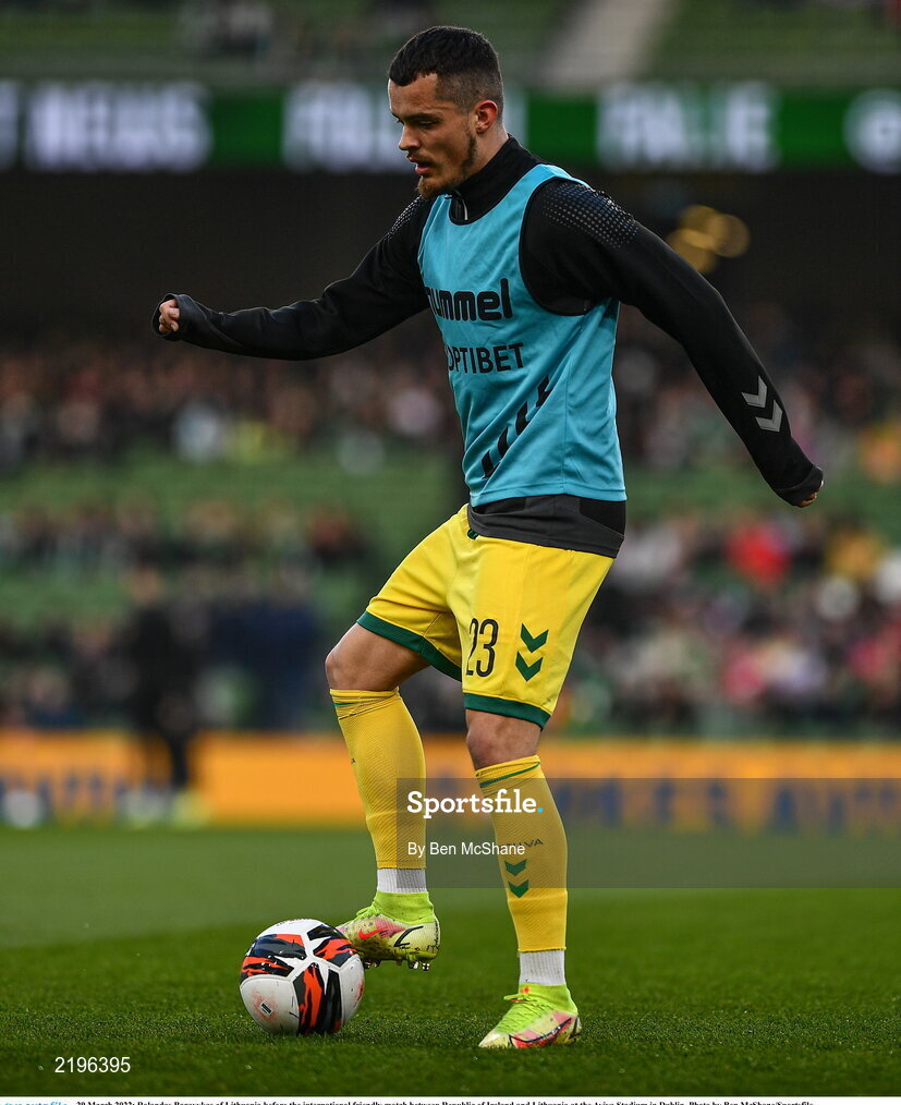 29 March 2022; Rolandas Baravykas of Lithuania before the international friendly match between Republic of Ireland and Lithuania at the Aviva Stadium in Dublin. Photo by Ben McShane/Sportsfile