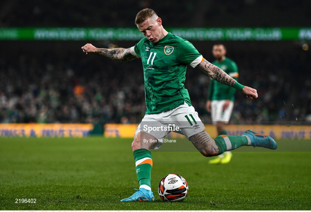29 March 2022; James McClean of Republic of Ireland during the international friendly match between Republic of Ireland and Lithuania at the Aviva Stadium in Dublin. Photo by Ben McShane/Sportsfile