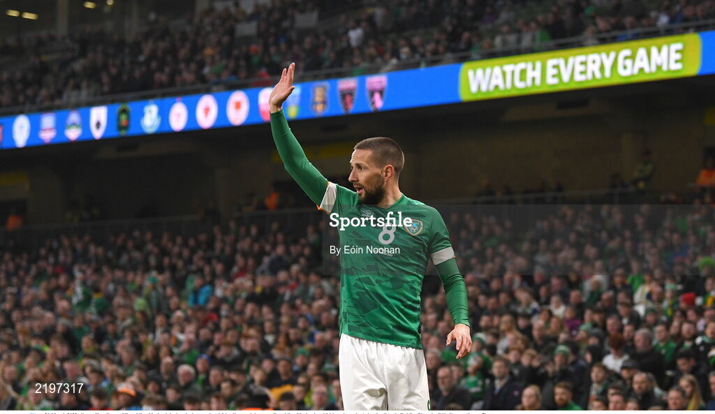 29 March 2022; Conor Hourihane of Republic of Ireland during the international friendly match between Republic of Ireland and Lithuania at the Aviva Stadium in Dublin. Photo by Eóin Noonan/Sportsfile