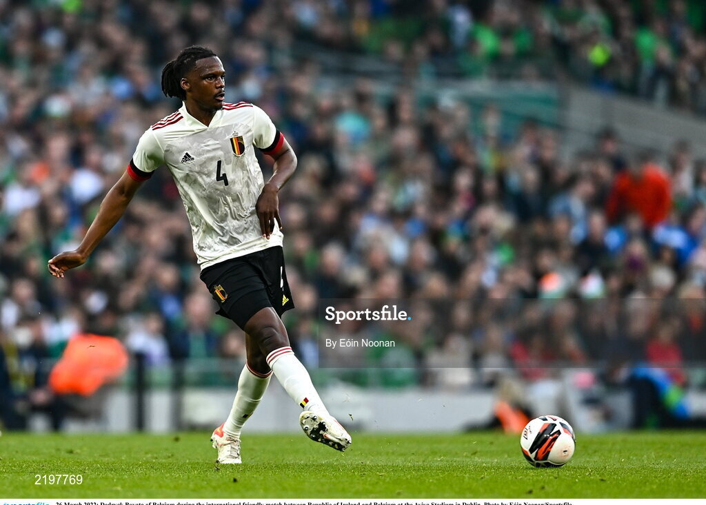 26 March 2022; Dedryck Boyata of Belgium during the international friendly match between Republic of Ireland and Belgium at the Aviva Stadium in Dublin. Photo by Eóin Noonan/Sportsfile