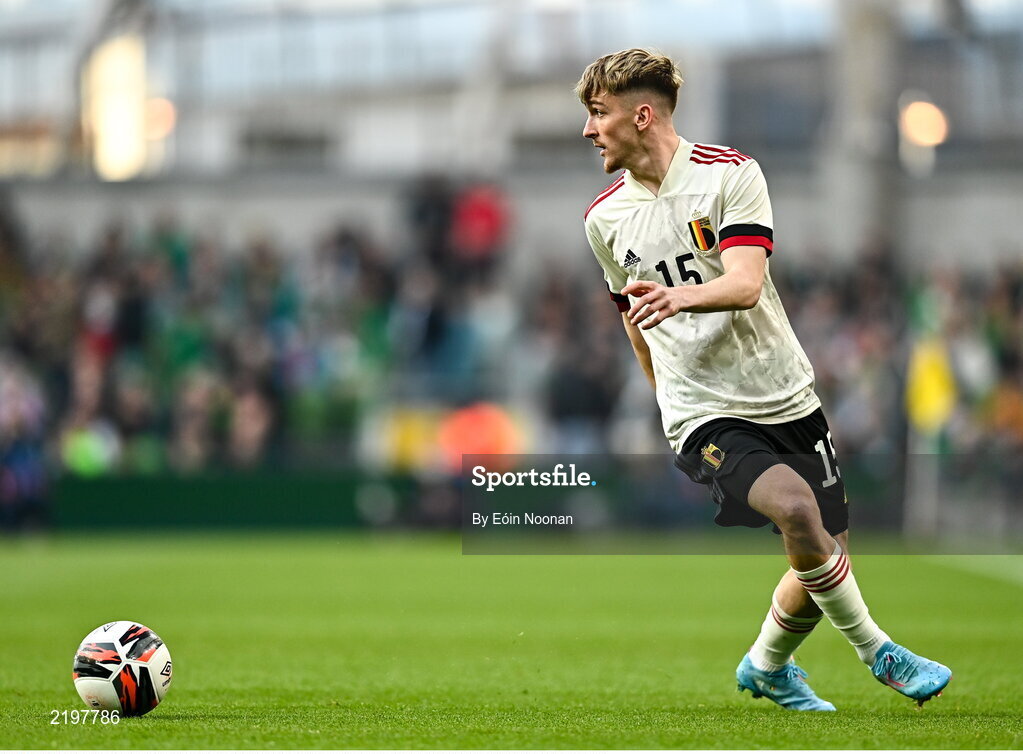 26 March 2022; Alexis Saelemaekers of Belgium during the international friendly match between Republic of Ireland and Belgium at the Aviva Stadium in Dublin. Photo by Eóin Noonan/Sportsfile