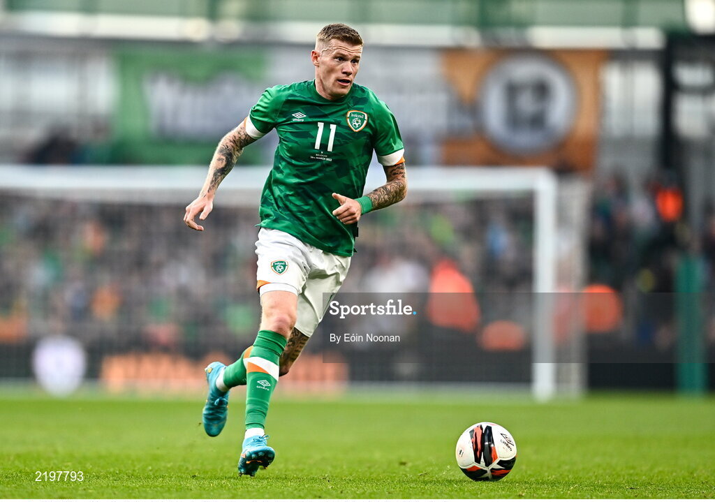 26 March 2022; James McClean of Republic of Ireland during the international friendly match between Republic of Ireland and Belgium at the Aviva Stadium in Dublin. Photo by Eóin Noonan/Sportsfile
