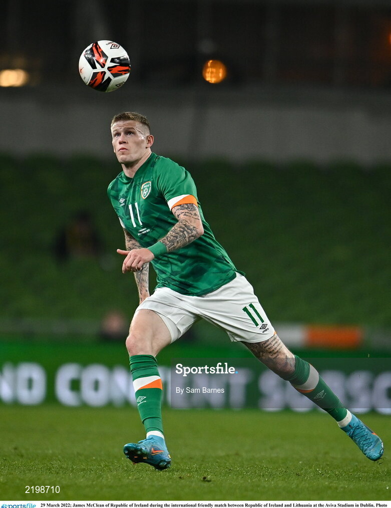 29 March 2022; James McClean of Republic of Ireland during the international friendly match between Republic of Ireland and Lithuania at the Aviva Stadium in Dublin. Photo by Sam Barnes/Sportsfile