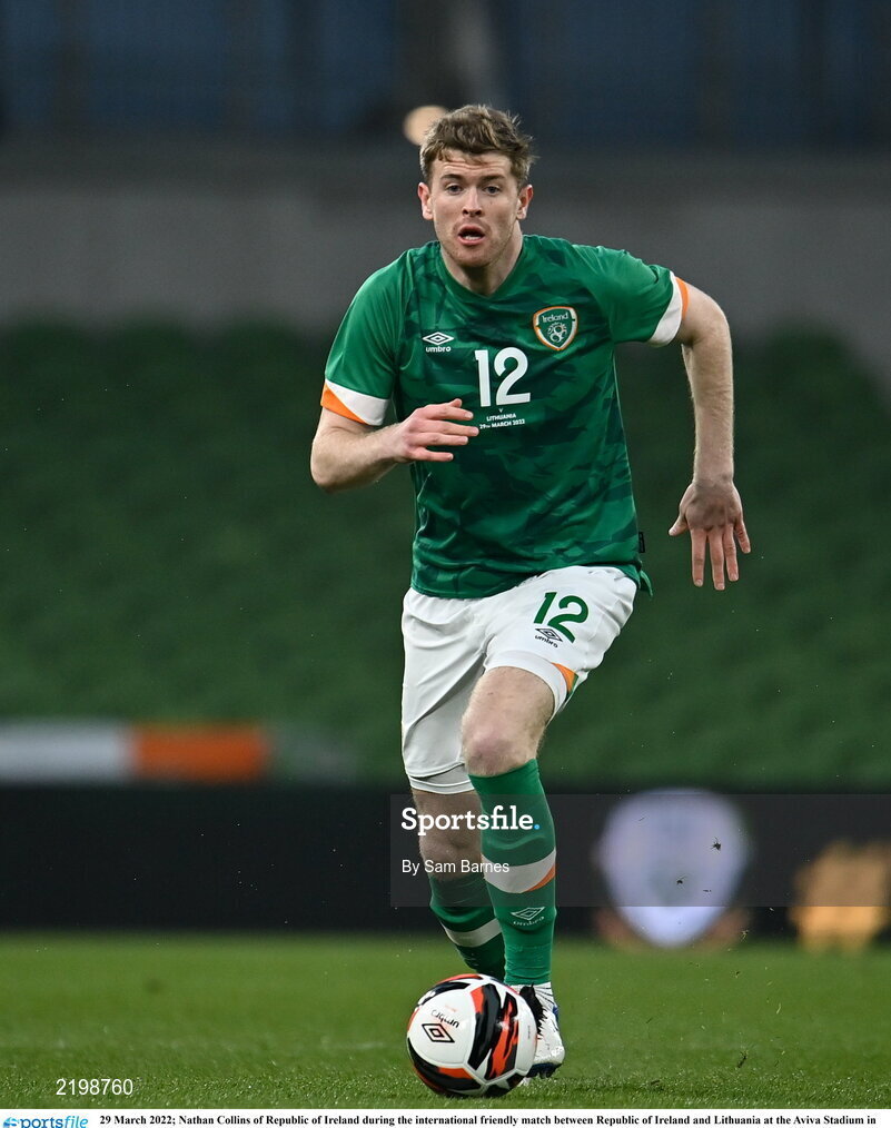 29 March 2022; Nathan Collins of Republic of Ireland during the international friendly match between Republic of Ireland and Lithuania at the Aviva Stadium in Dublin. Photo by Sam Barnes/Sportsfile