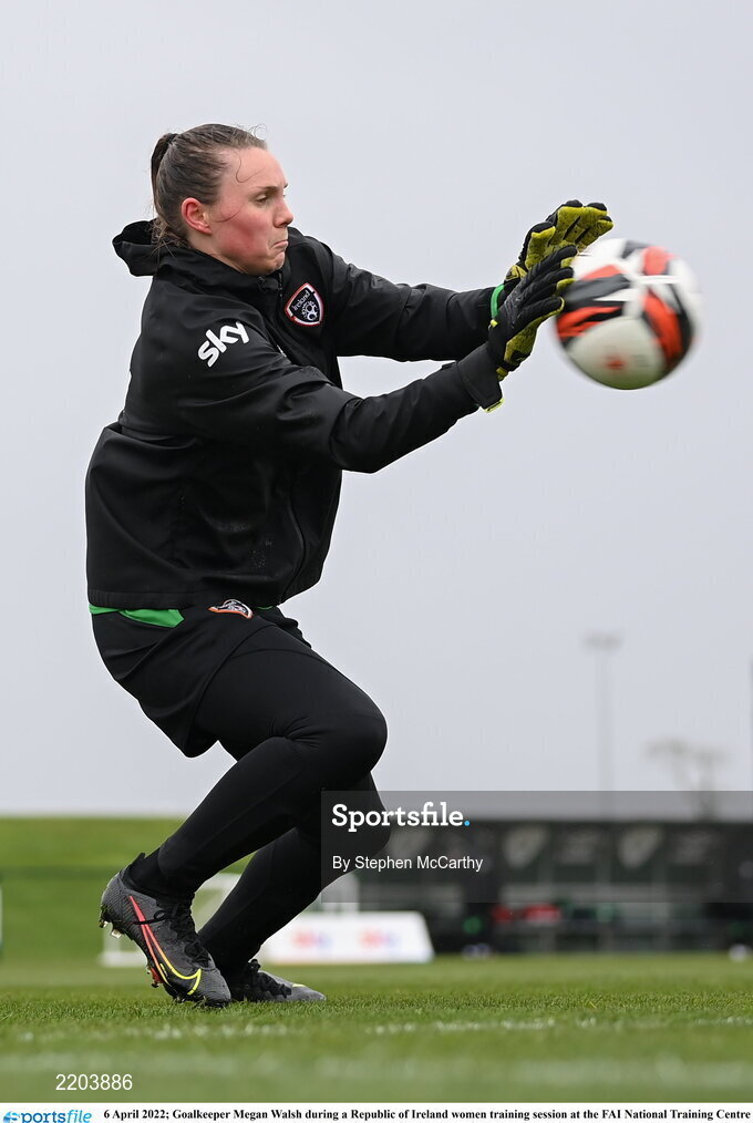 6 April 2022; Goalkeeper Megan Walsh during a Republic of Ireland women training session at the FAI National Training Centre in Abbotstown, Dublin. Photo by Stephen McCarthy/Sportsfile