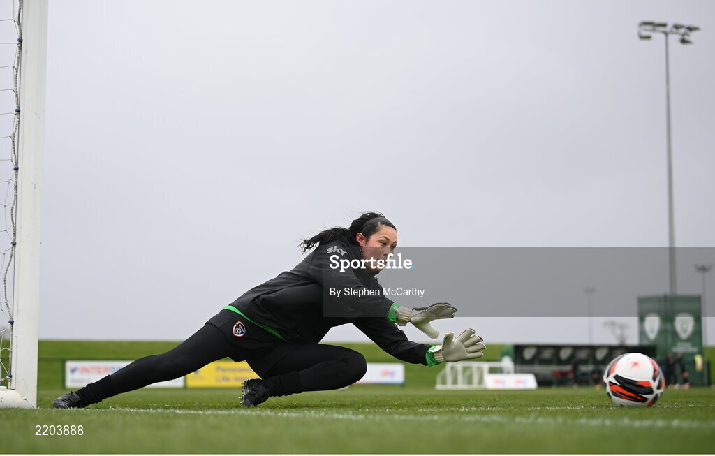 6 April 2022; Goalkeeper Eve Badana during a Republic of Ireland women training session at the FAI National Training Centre in Abbotstown, Dublin. Photo by Stephen McCarthy/Sportsfile
