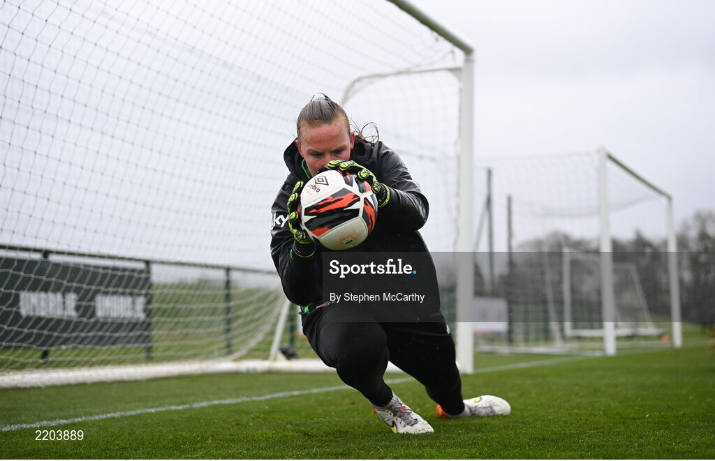6 April 2022; Goalkeeper Courtney Brosnan during a Republic of Ireland women training session at the FAI National Training Centre in Abbotstown, Dublin. Photo by Stephen McCarthy/Sportsfile
