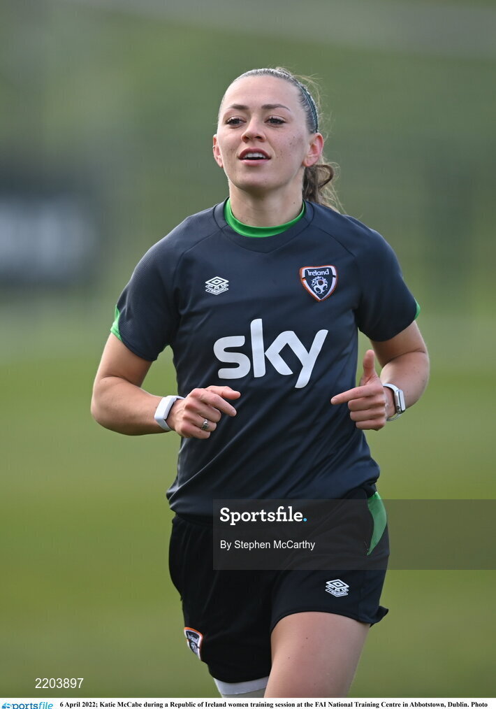 6 April 2022; Katie McCabe during a Republic of Ireland women training session at the FAI National Training Centre in Abbotstown, Dublin. Photo by Stephen McCarthy/Sportsfile