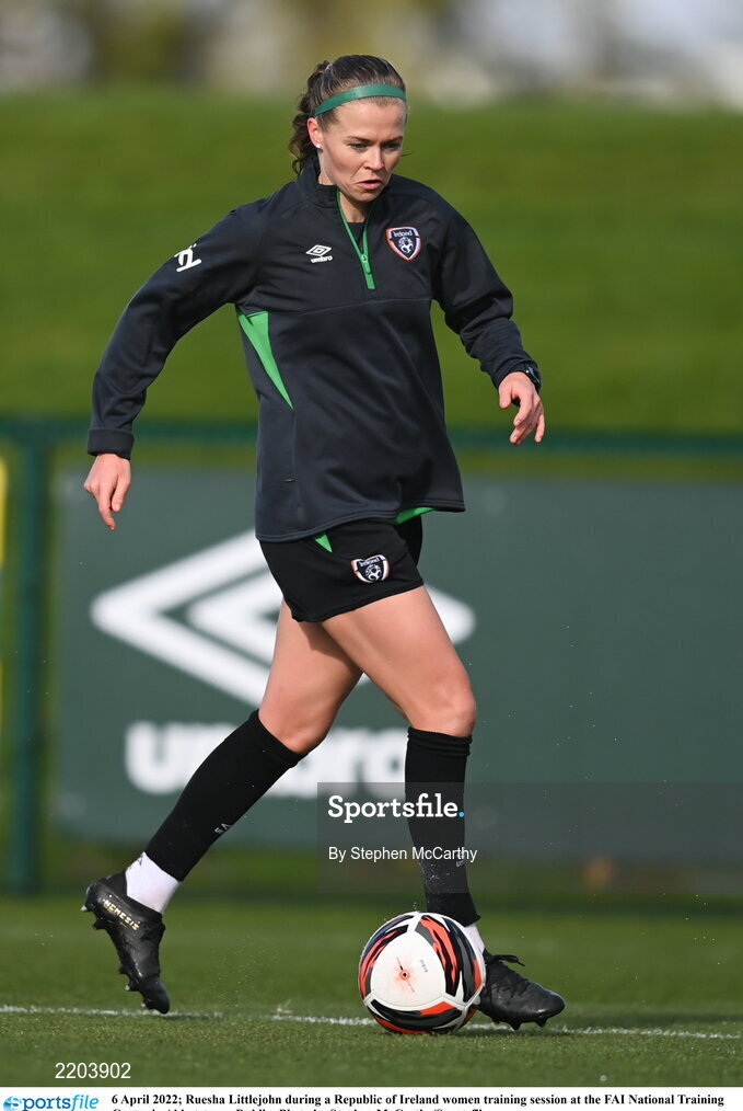 6 April 2022; Ruesha Littlejohn during a Republic of Ireland women training session at the FAI National Training Centre in Abbotstown, Dublin. Photo by Stephen McCarthy/Sportsfile