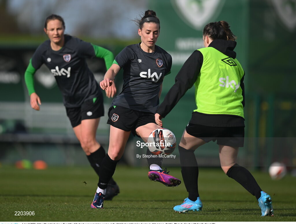 6 April 2022; Chloe Mustaki during a Republic of Ireland women training session at the FAI National Training Centre in Abbotstown, Dublin. Photo by Stephen McCarthy/Sportsfile