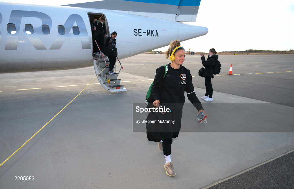 9 April 2022; Republic of Ireland's Leanne Kiernan arrives at Göteborg Landvetter Airport in Sweden ahead of their FIFA Women's World Cup 2023 Qualifier match against Sweden on Tuesday. Photo by Stephen McCarthy/Sportsfile