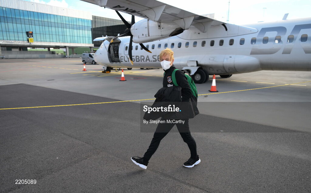 9 April 2022; Republic of Ireland manager Vera Pauw arrives at Göteborg Landvetter Airport in Sweden ahead of their FIFA Women's World Cup 2023 Qualifier match against Sweden on Tuesday. Photo by Stephen McCarthy/Sportsfile