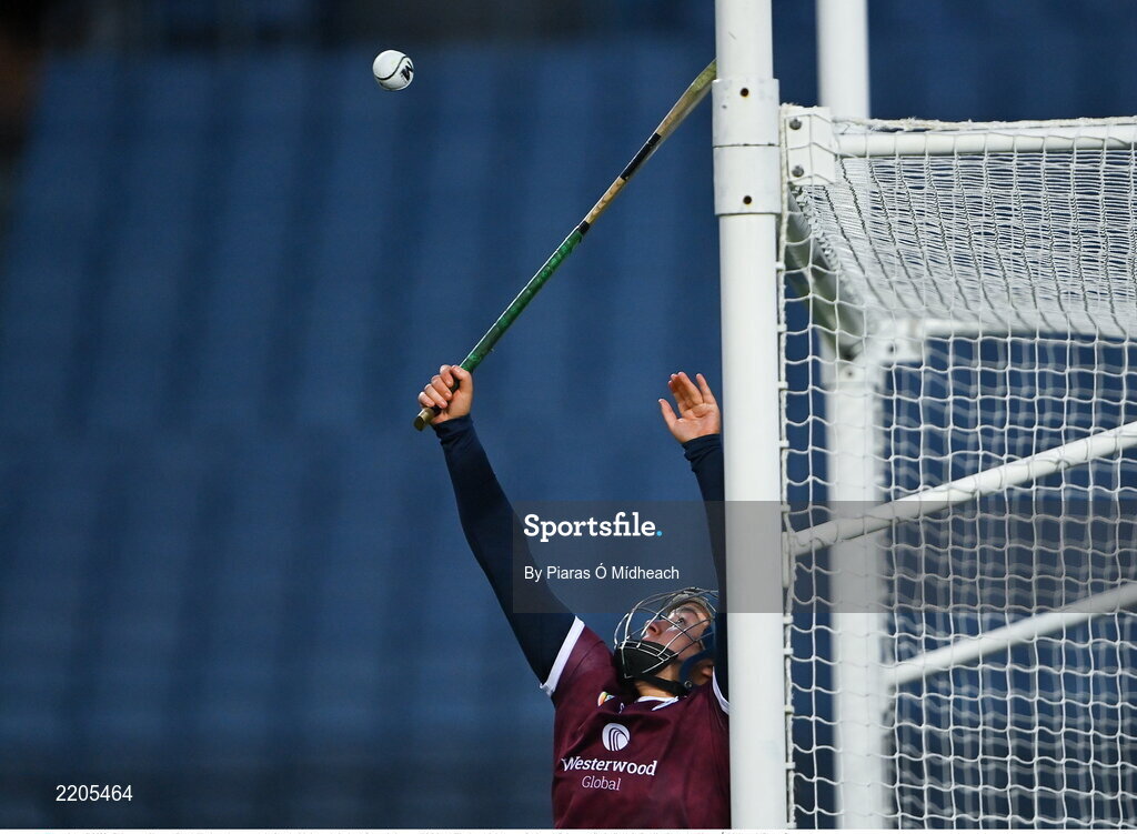 9 April 2022; Galway goalkeeper Sarah Healy makes a save during the Littlewoods Ireland Camogie League Division 1 Final match between Cork and Galway at Croke Park in Dublin. Photo by Piaras Ó Mídheach/Sportsfile