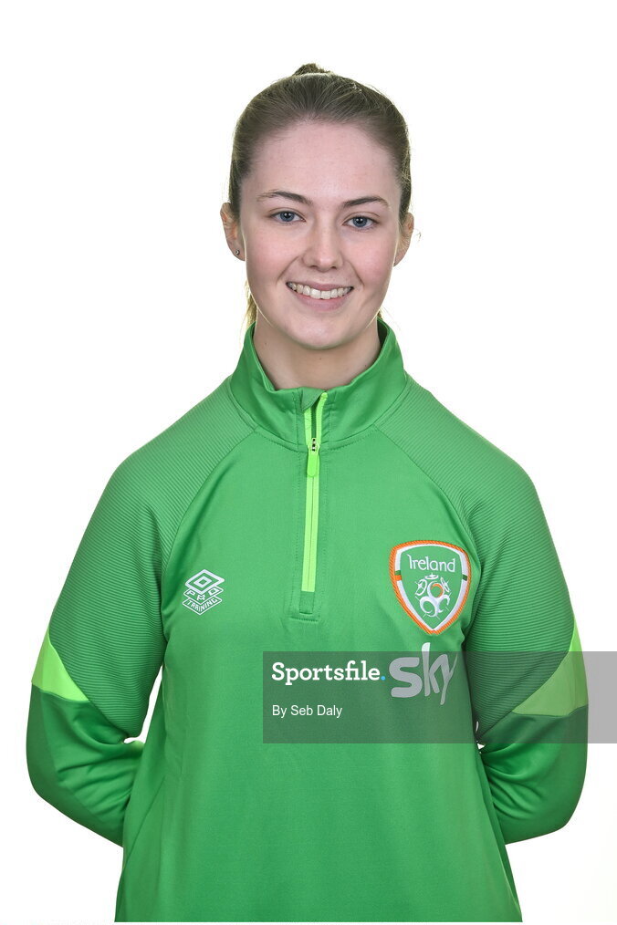 8 April 2022; Digital media coordinator Emma Clinton during a Republic of Ireland Women squad portrait session at Castleknock Hotel in Dublin. Photo by Seb Daly/Sportsfile