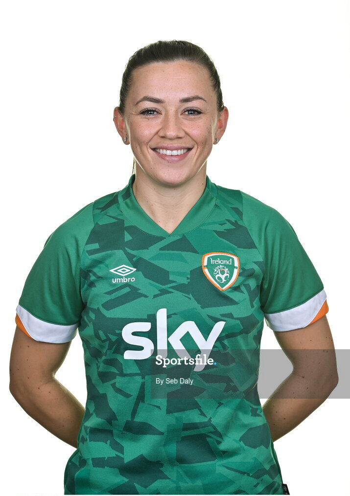 8 April 2022; Katie McCabe during a Republic of Ireland Women squad portrait session at Castleknock Hotel in Dublin. Photo by Seb Daly/Sportsfile