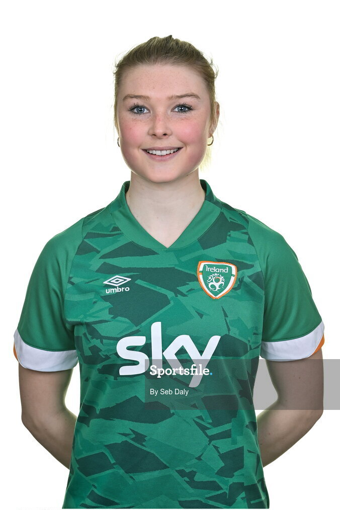 8 April 2022; Éabha O'Mahony during a Republic of Ireland Women squad portrait session at Castleknock Hotel in Dublin. Photo by Seb Daly/Sportsfile