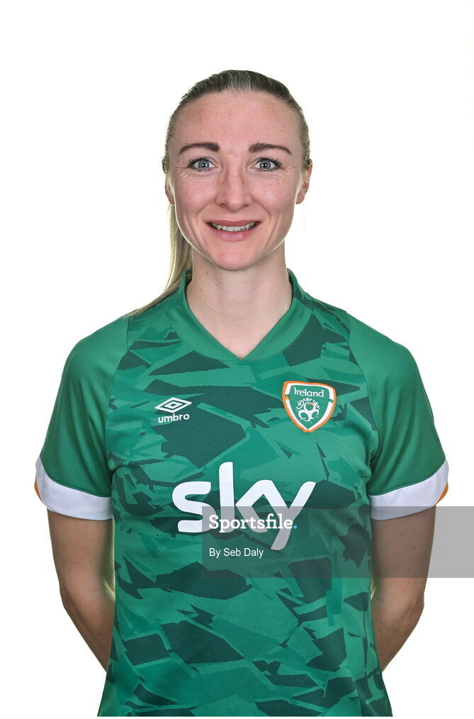 8 April 2022; Louise Quinn during a Republic of Ireland Women squad portrait session at Castleknock Hotel in Dublin. Photo by Seb Daly/Sportsfile