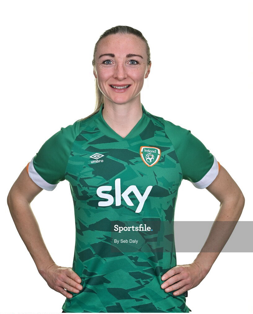 8 April 2022; Louise Quinn during a Republic of Ireland Women squad portrait session at Castleknock Hotel in Dublin. Photo by Seb Daly/Sportsfile