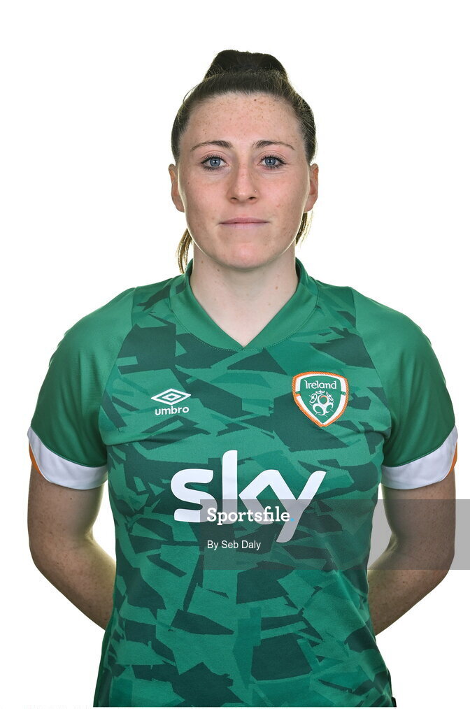 8 April 2022; Lucy Quinn during a Republic of Ireland Women squad portrait session at Castleknock Hotel in Dublin. Photo by Seb Daly/Sportsfile