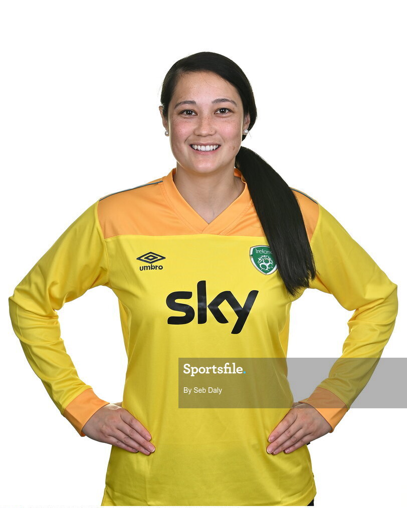 8 April 2022; Eve Badana during a Republic of Ireland Women squad portrait session at Castleknock Hotel in Dublin. Photo by Seb Daly/Sportsfile
