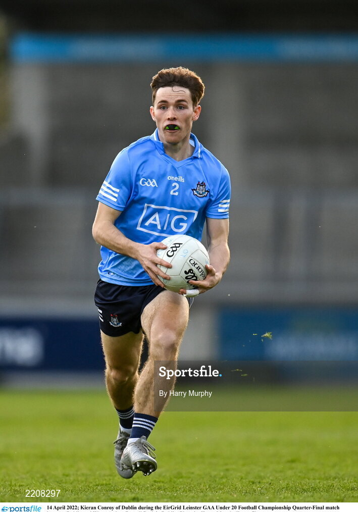 14 April 2022; Kieran Conroy of Dublin during the EirGrid Leinster GAA Under 20 Football Championship Quarter-Final match between Dublin and Westmeath at Parnell Park in Dublin. Photo by Harry Murphy/Sportsfile