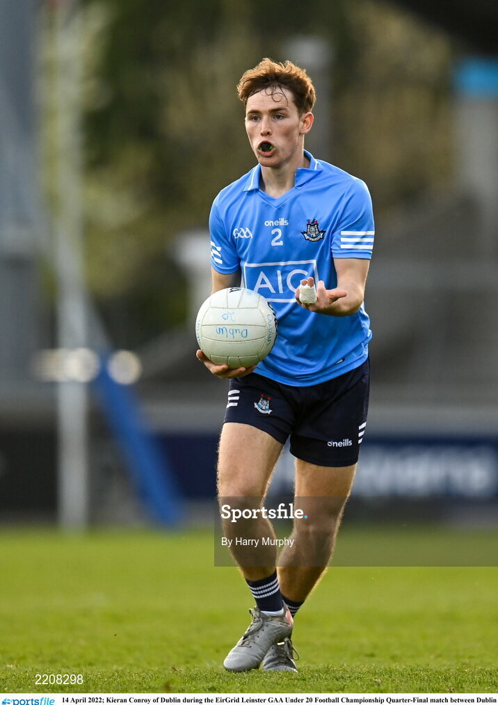 14 April 2022; Kieran Conroy of Dublin during the EirGrid Leinster GAA Under 20 Football Championship Quarter-Final match between Dublin and Westmeath at Parnell Park in Dublin. Photo by Harry Murphy/Sportsfile