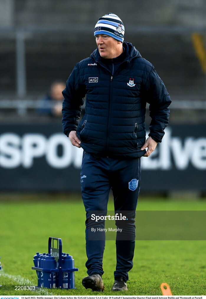 14 April 2022; Dublin manager Jim Lehane before the EirGrid Leinster GAA Under 20 Football Championship Quarter-Final match between Dublin and Westmeath at Parnell Park in Dublin. Photo by Harry Murphy/Sportsfile
