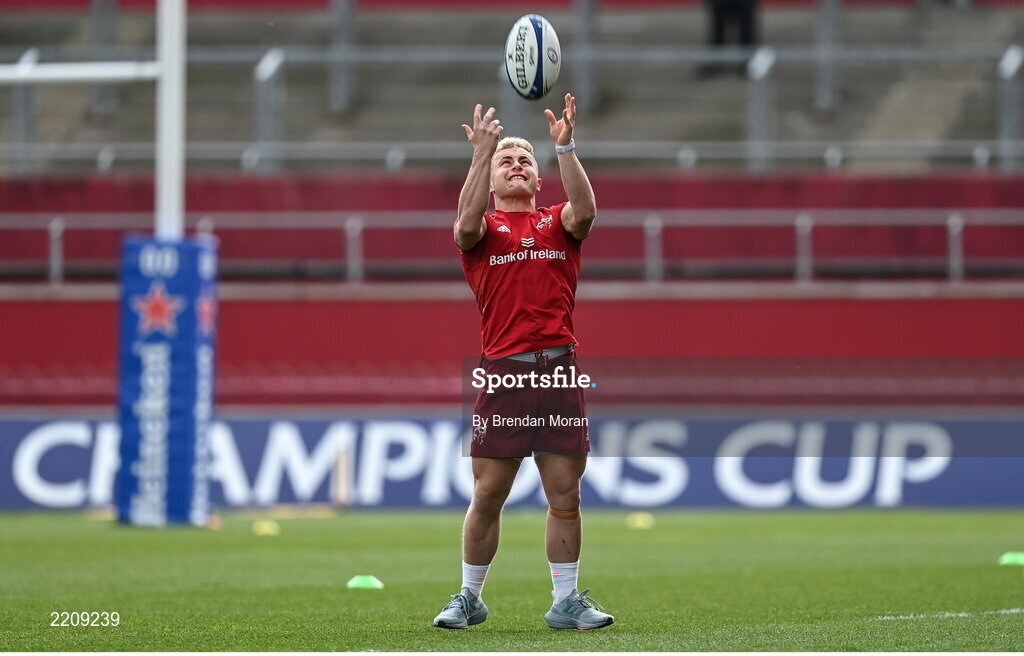 16 April 2022; Craig Casey of Munster before the Heineken Champions Cup Round of 16 Second Leg match between Munster and Exeter Chiefs at Thomond Park in Limerick. Photo by Brendan Moran/Sportsfile