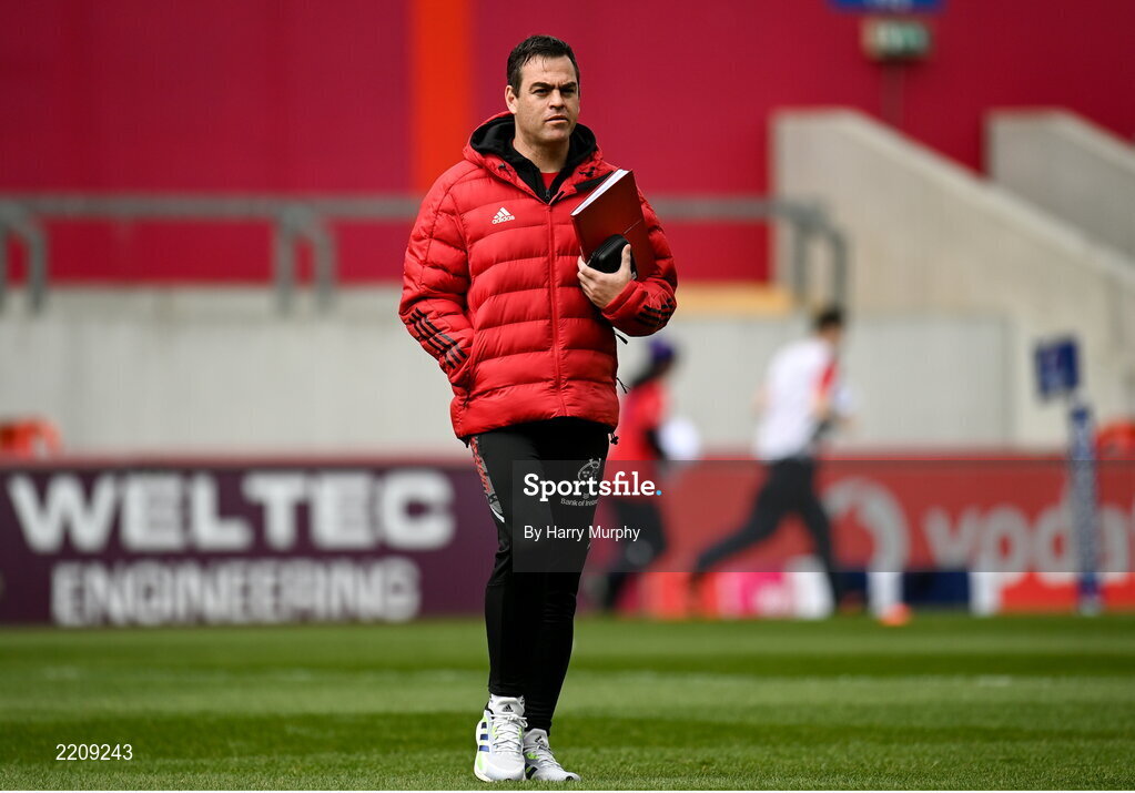 16 April 2022; Munster head coach Johann van Graan before the Heineken Champions Cup Round of 16 Second Leg match between Munster and Exeter Chiefs at Thomond Park in Limerick. Photo by Harry Murphy/Sportsfile
