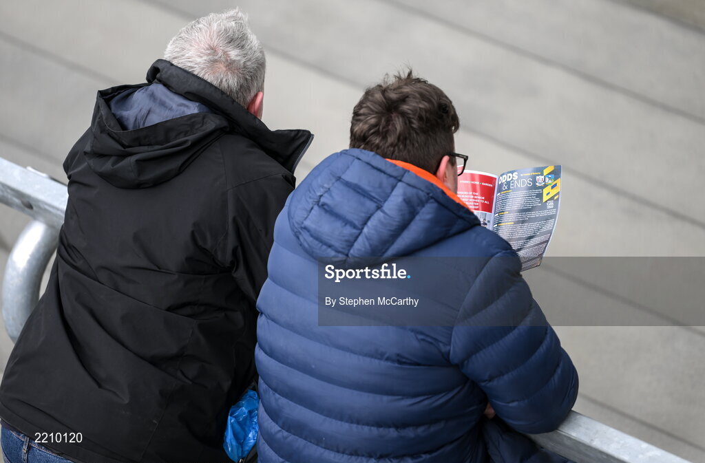 17 April 2022; A supporter studies the match day programme before the Munster GAA Hurling Senior Championship Round 1 match between Cork and Limerick at Páirc Uí Chaoimh in Cork. Photo by Stephen McCarthy/Sportsfile
