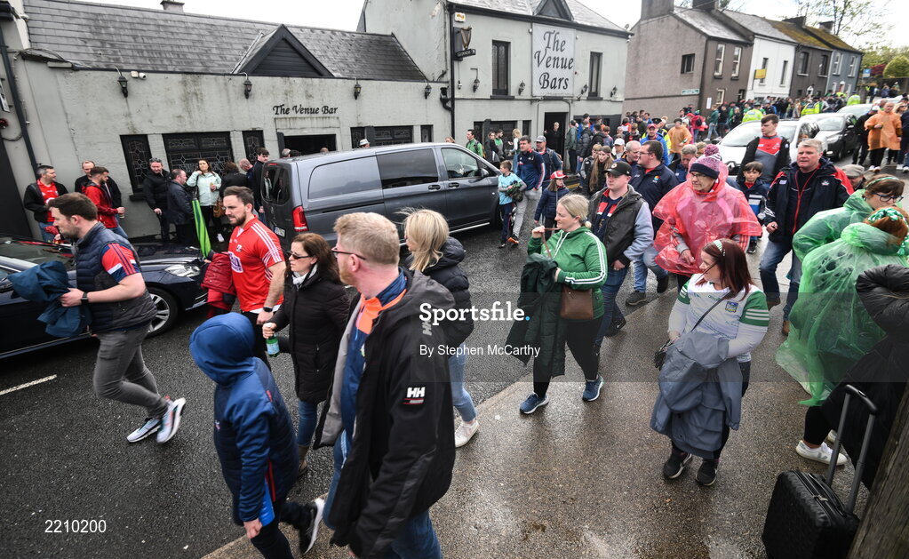 17 April 2022; Supporters pass The Venue Bar on the way to Páirc Uí Chaoimh before the Munster GAA Hurling Senior Championship Round 1 match between Cork and Limerick at Páirc Uí Chaoimh in Cork. Photo by Stephen McCarthy/Sportsfile