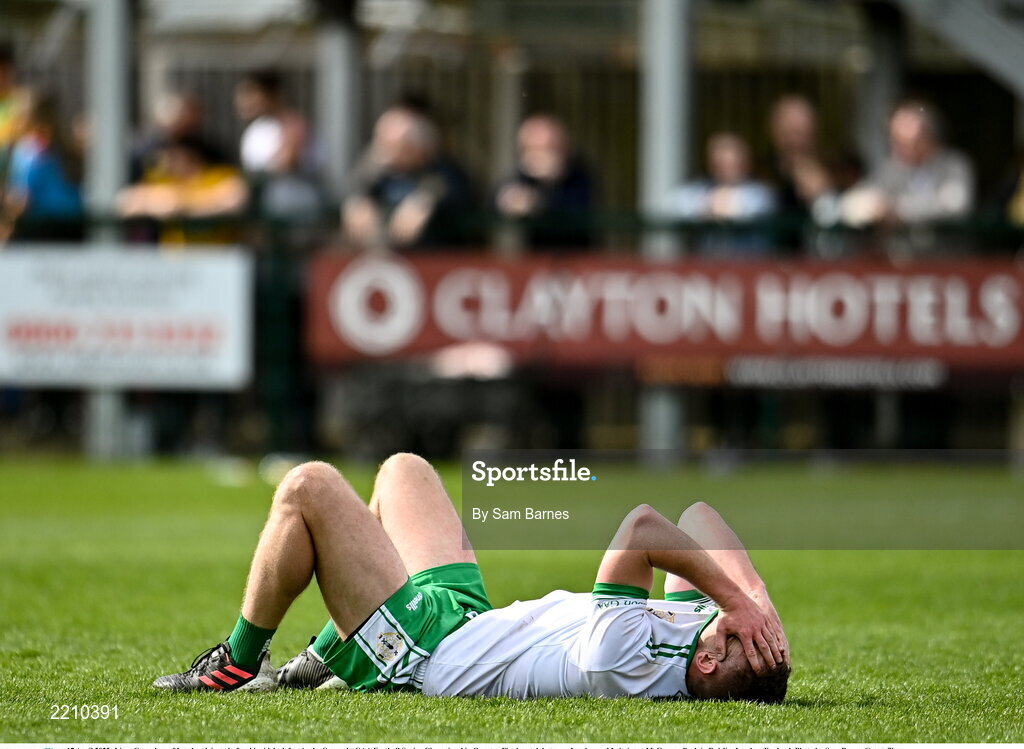 17 April 2022; Liam Gavaghan of London dejected after his side's defeat in the Connacht GAA Football Senior Championship Quarter-Final match between London and Leitrim at McGovern Park in Ruislip, London, England. Photo by Sam Barnes/Sportsfile