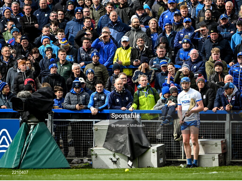 17 April 2022; Spectators look on as Austin Gleeson of Waterford prepares to take a sideline during the Munster GAA Hurling Senior Championship Round 1 match between Waterford and Tipperary at Walsh Park in Waterford. Photo by Piaras Ó Mídheach/Sportsfile