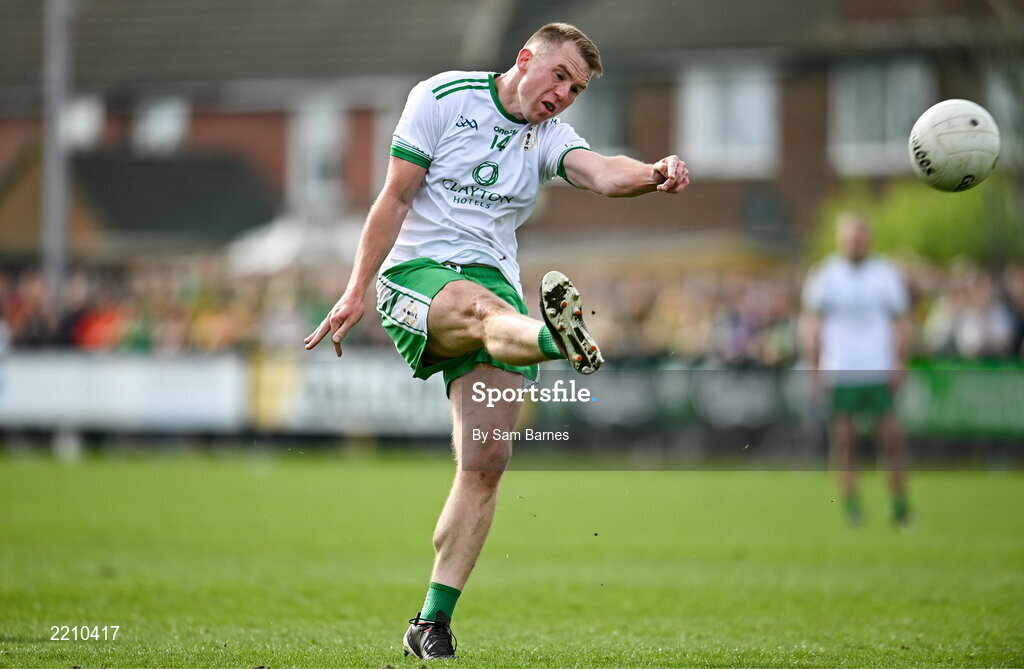 17 April 2022; Liam Gavaghan of London attempts to score a late point which subsiquently goes wide during the Connacht GAA Football Senior Championship Quarter-Final match between London and Leitrim at McGovern Park in Ruislip, London, England. Photo by Sam Barnes/Sportsfile