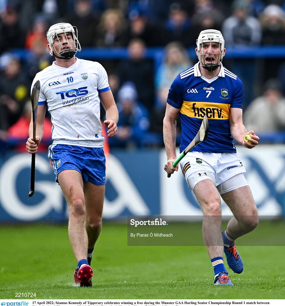 17 April 2022; Séamus Kennedy of Tipperary celebrates winning a free during the Munster GAA Hurling Senior Championship Round 1 match between Waterford and Tipperary at Walsh Park in Waterford. Photo by Piaras Ó Mídheach/Sportsfile