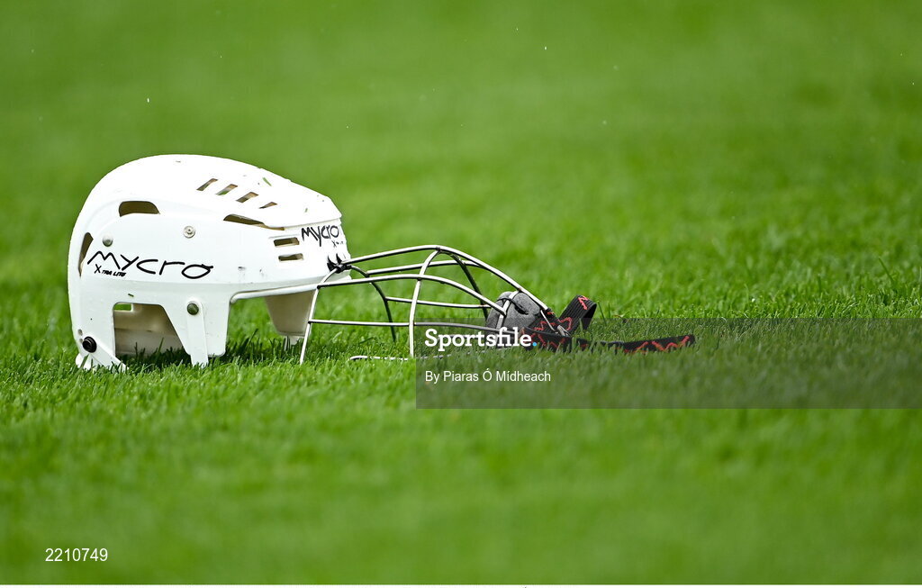 17 April 2022; A helmet on the pitch before the Munster GAA Hurling Senior Championship Round 1 match between Waterford and Tipperary at Walsh Park in Waterford. Photo by Piaras Ó Mídheach/Sportsfile