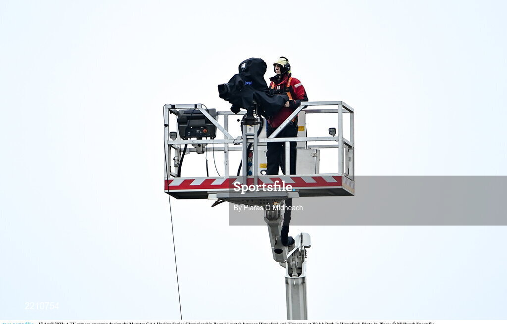 17 April 2022; A TV camera operator during the Munster GAA Hurling Senior Championship Round 1 match between Waterford and Tipperary at Walsh Park in Waterford. Photo by Piaras Ó Mídheach/Sportsfile