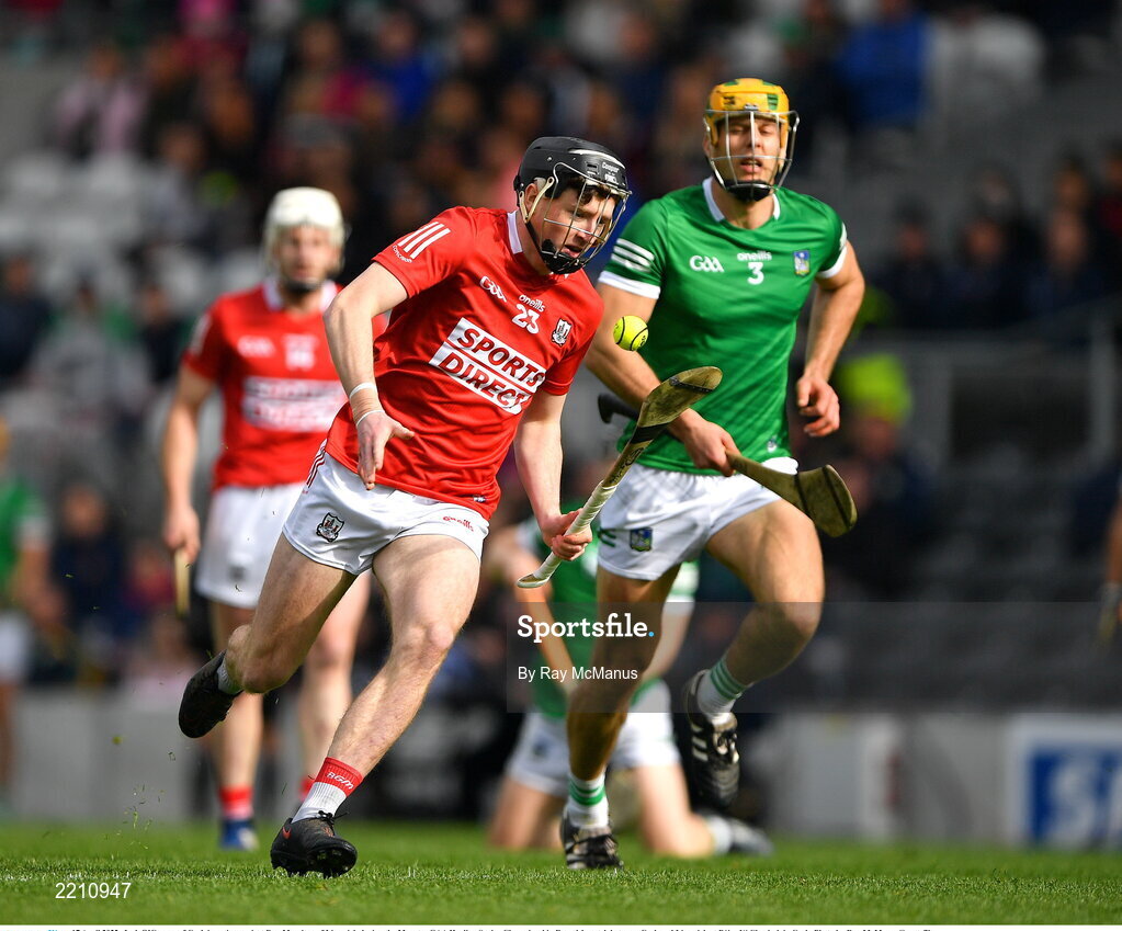 17 April 2022; Jack O’Connor of Cork in action against Dan Morrisey of Limerick during the Munster GAA Hurling Senior Championship Round 1 match between Cork and Limerick at Páirc Uí Chaoimh in Cork. Photo by Ray McManus/Sportsfile