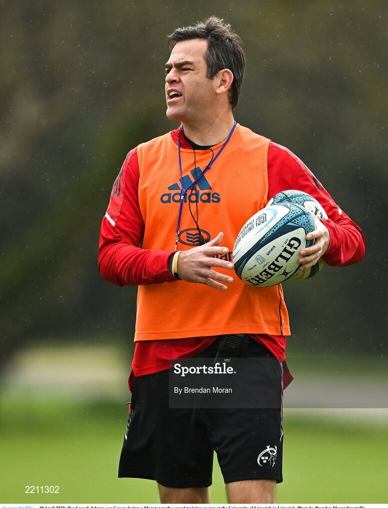 19 April 2022; Head coach Johann van Graan during a Munster rugby squad training session at the University of Limerick in Limerick. Photo by Brendan Moran/Sportsfile