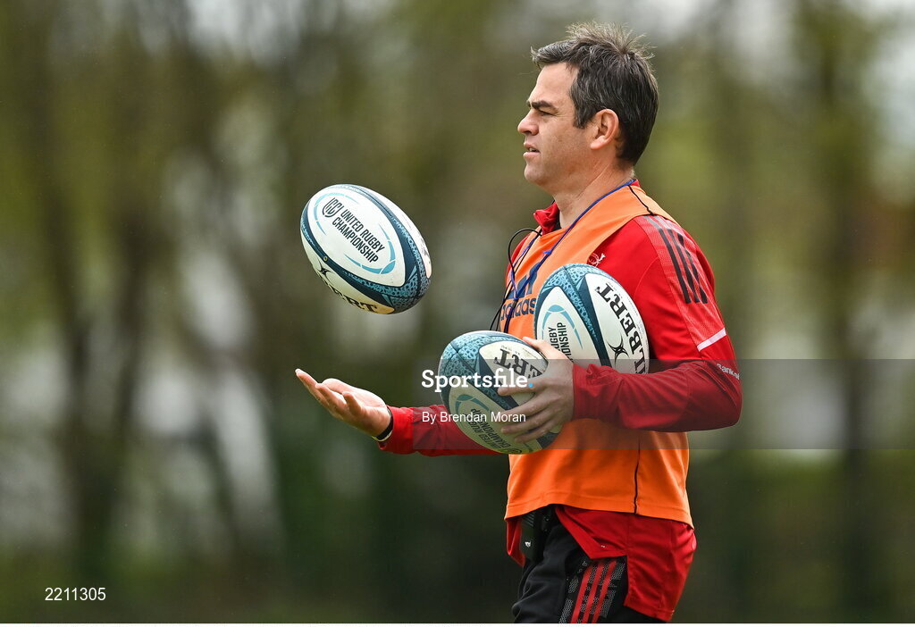 19 April 2022; Head coach Johann van Graan during a Munster rugby squad training session at the University of Limerick in Limerick. Photo by Brendan Moran/Sportsfile