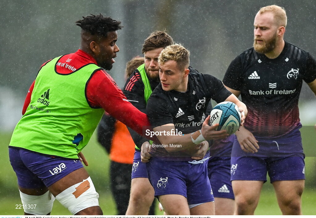 19 April 2022; Craig Casey during a Munster rugby squad training session at the University of Limerick in Limerick. Photo by Brendan Moran/Sportsfile