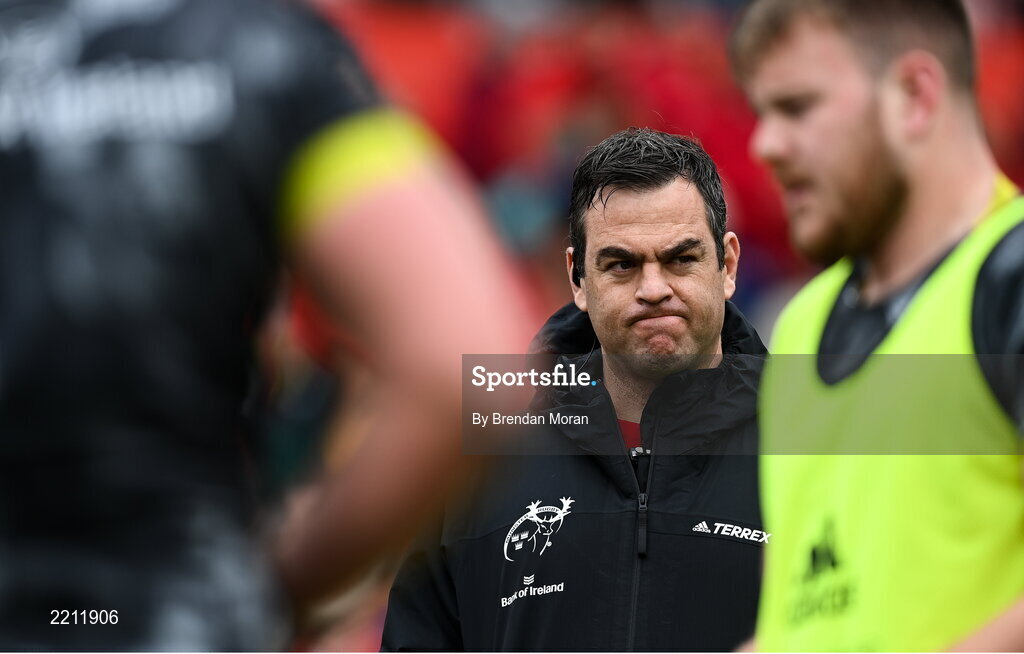 16 April 2022; Munster head coach Johann van Graan before the Heineken Champions Cup Round of 16 Second Leg match between Munster and Exeter Chiefs at Thomond Park in Limerick. Photo by Brendan Moran/Sportsfile