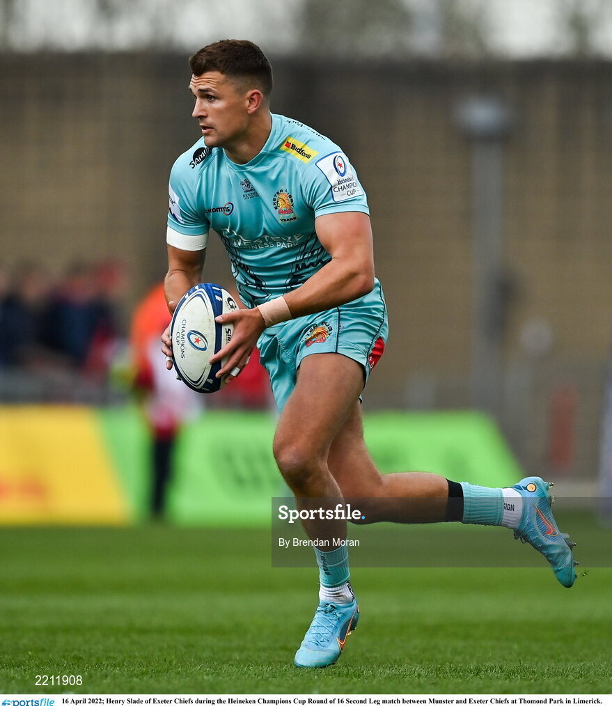 16 April 2022; Henry Slade of Exeter Chiefs during the Heineken Champions Cup Round of 16 Second Leg match between Munster and Exeter Chiefs at Thomond Park in Limerick. Photo by Brendan Moran/Sportsfile