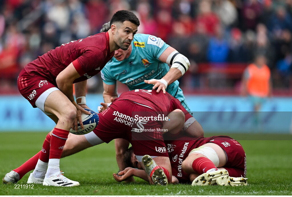 16 April 2022; Conor Murray of Munster during the Heineken Champions Cup Round of 16 Second Leg match between Munster and Exeter Chiefs at Thomond Park in Limerick. Photo by Brendan Moran/Sportsfile
